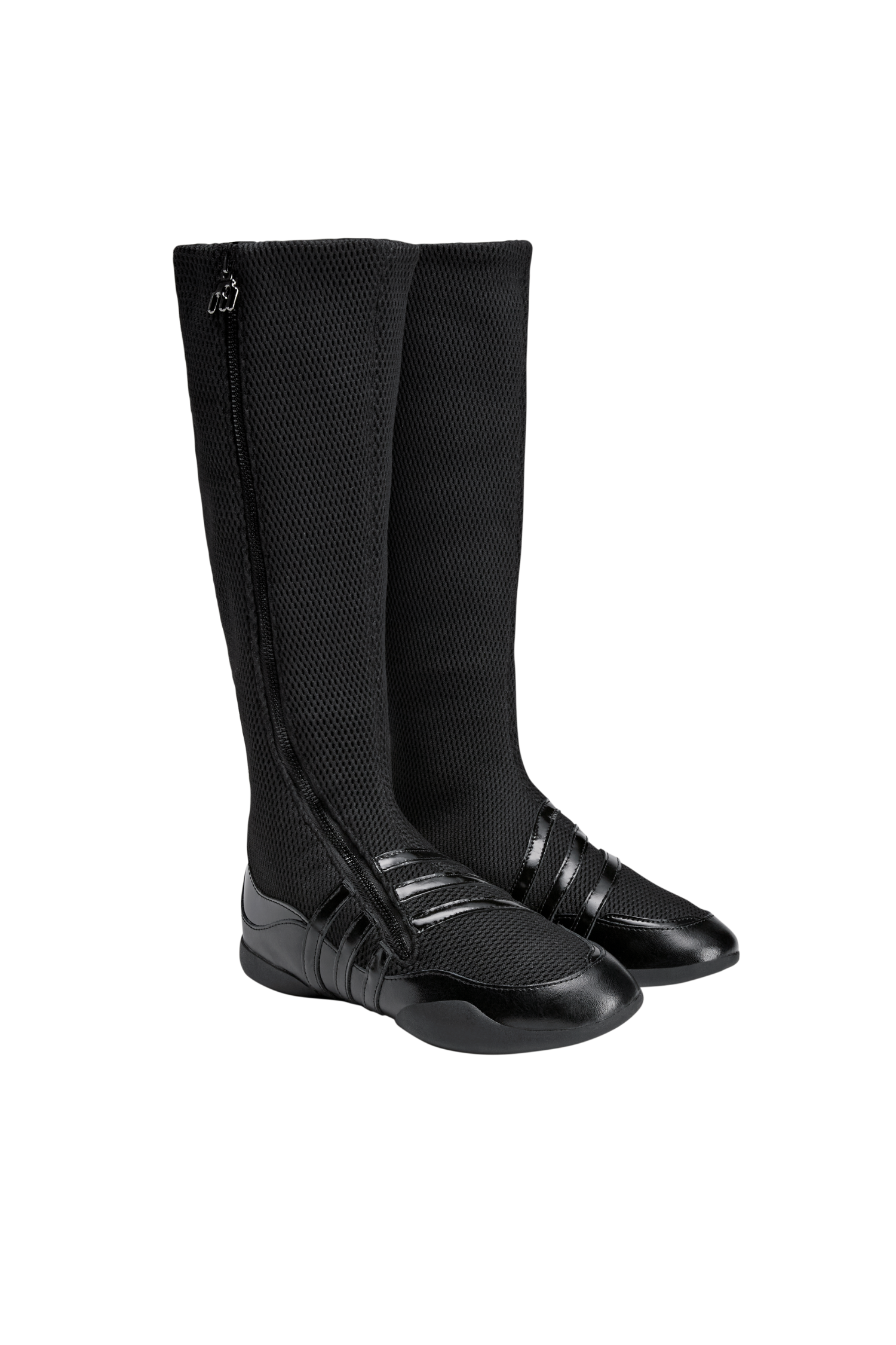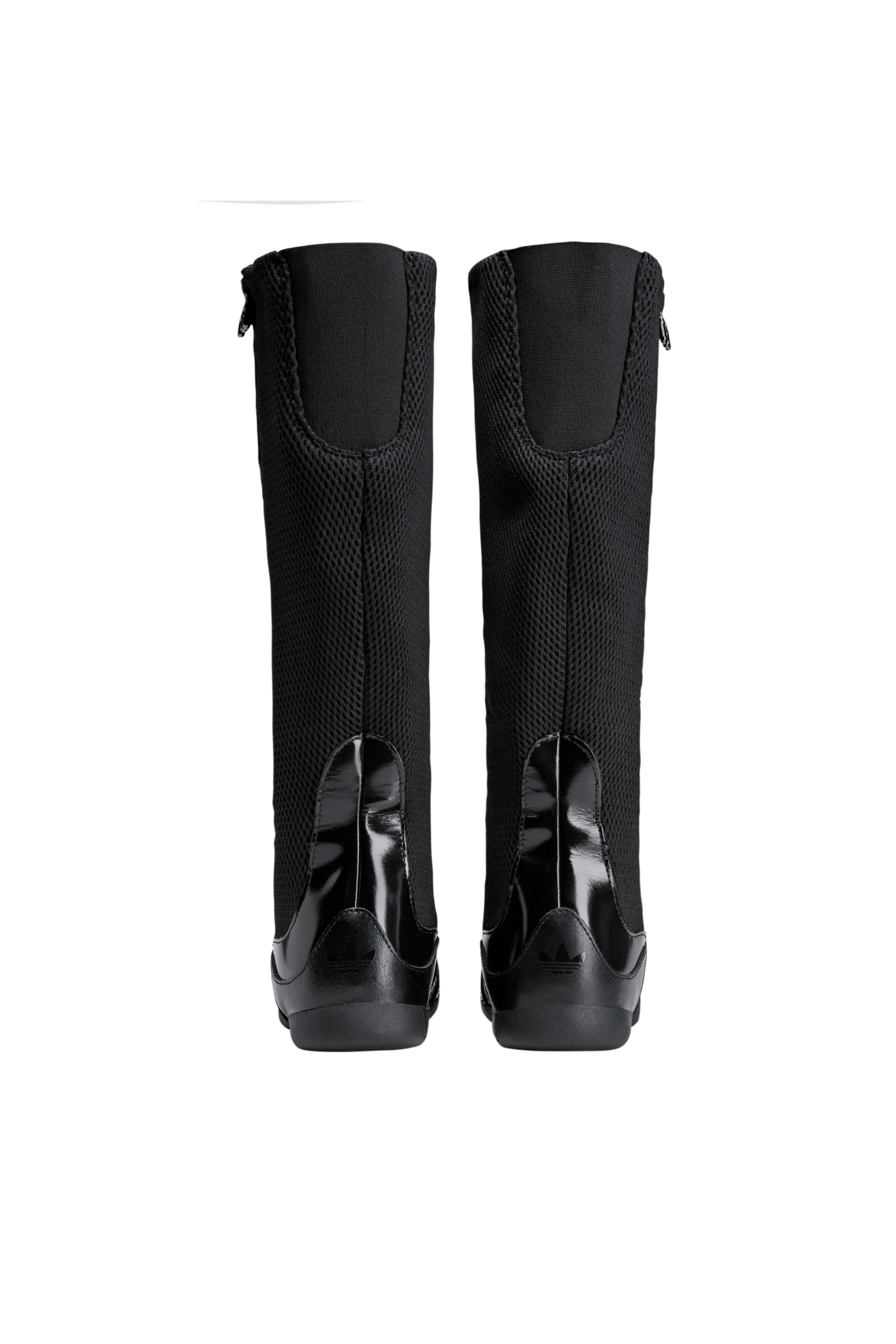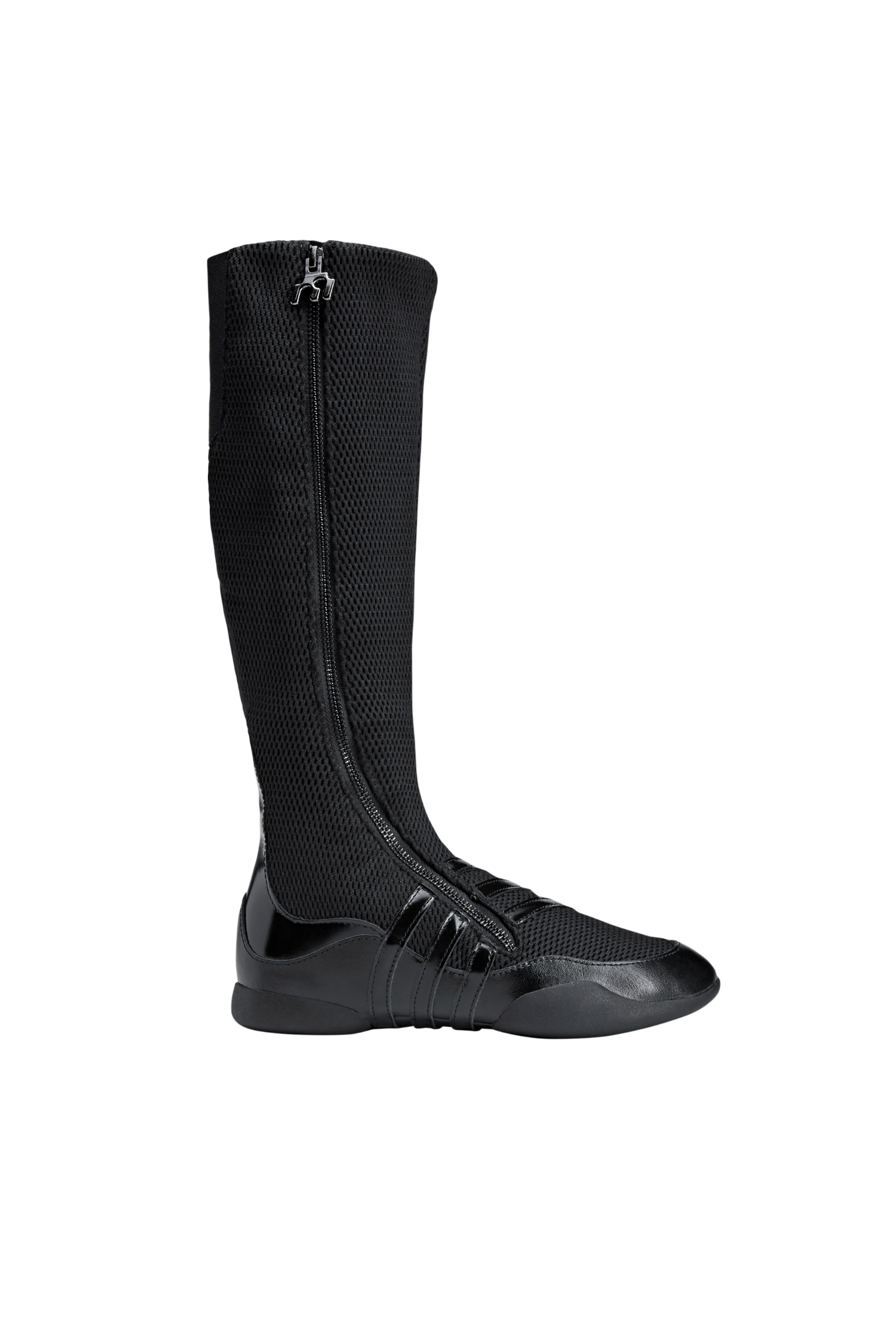 Miaou's latest collaboration shoe with Adidas. Adding dramatic height to the low profile look, the Miaou Boot takes adidas’ Taekwondo tooling and reimagines it with a high cut mesh body with leather Three Stripes and a black metallic “M” branded zip pull. Leather and textile boots with rubber outsole for a premium feel and lasting durability.