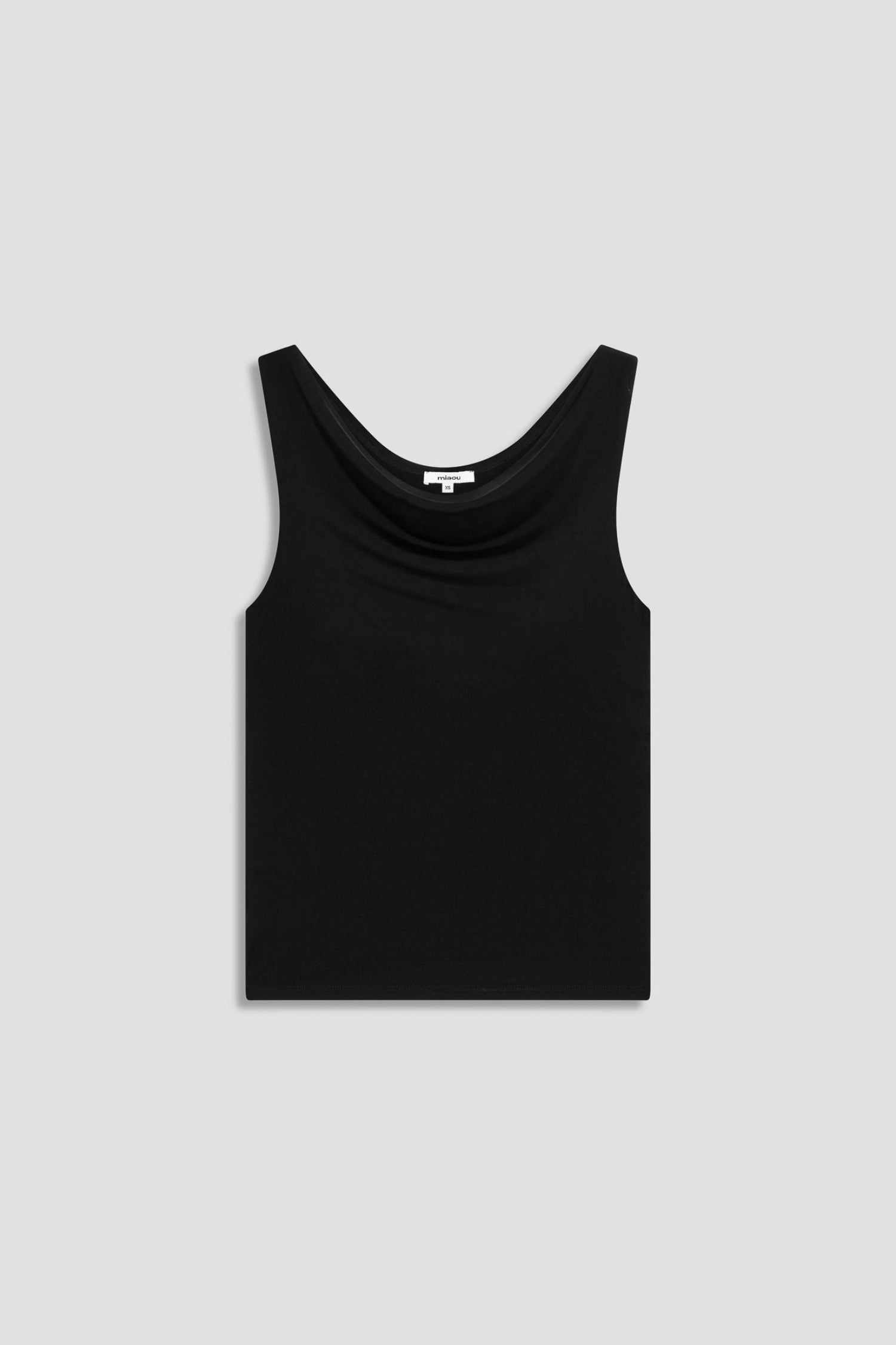 Meet the Lani in Black. With her cinched waist and cowl neckline, this sleeveless tank complements your body perfectly.