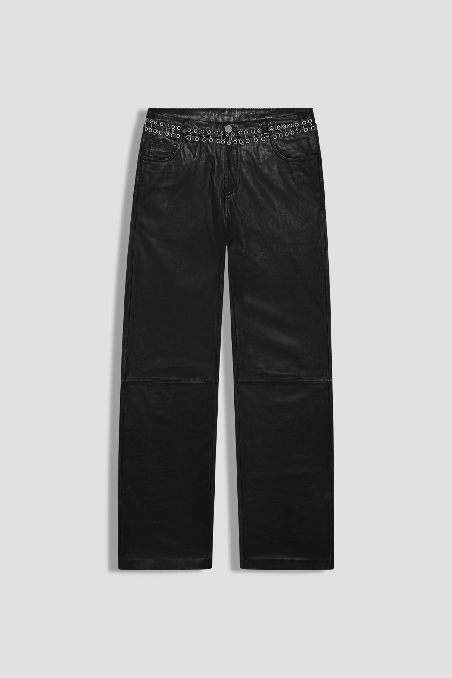 Preorder, ships first week of February. The Josephina Pant is cut low-rise in smooth lamb leather. Finished with pierced detailing and a classic five-pocket design, she’s sleek, edgy, and made to move with you.