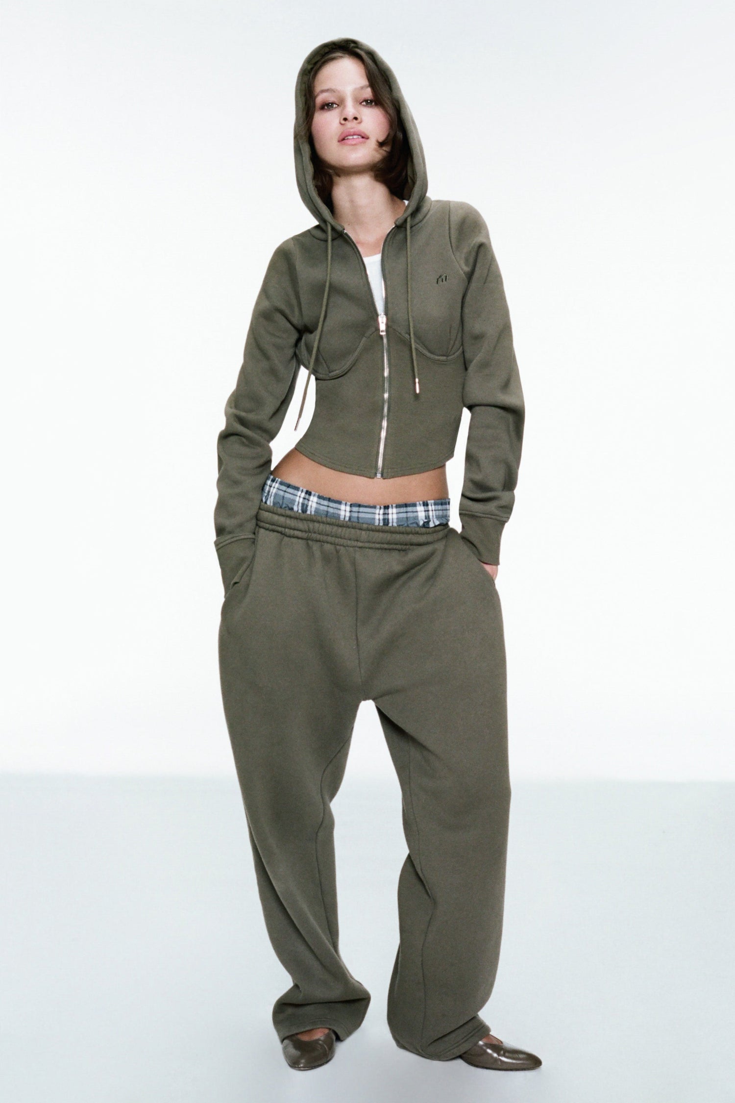 Preorder. Our fan favorite fleece sweatshirt returns in a rich olive palette. The Sadie is Miaou's interpretation of a zip-up hoodie: she features a corset-style waist where form and function unite. Wear her to the airport with our Zev Pant for the full look.