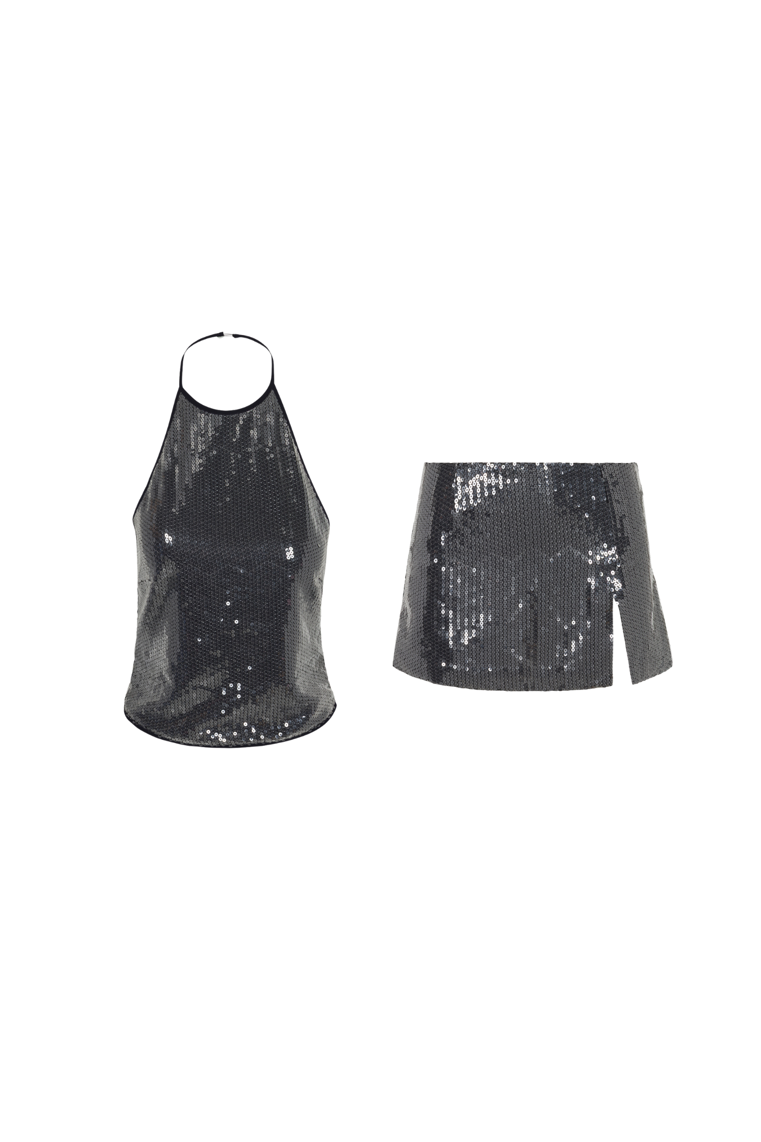 NATALIA TOP + MICRO MINI SKIRT - BLACK SEQUIN